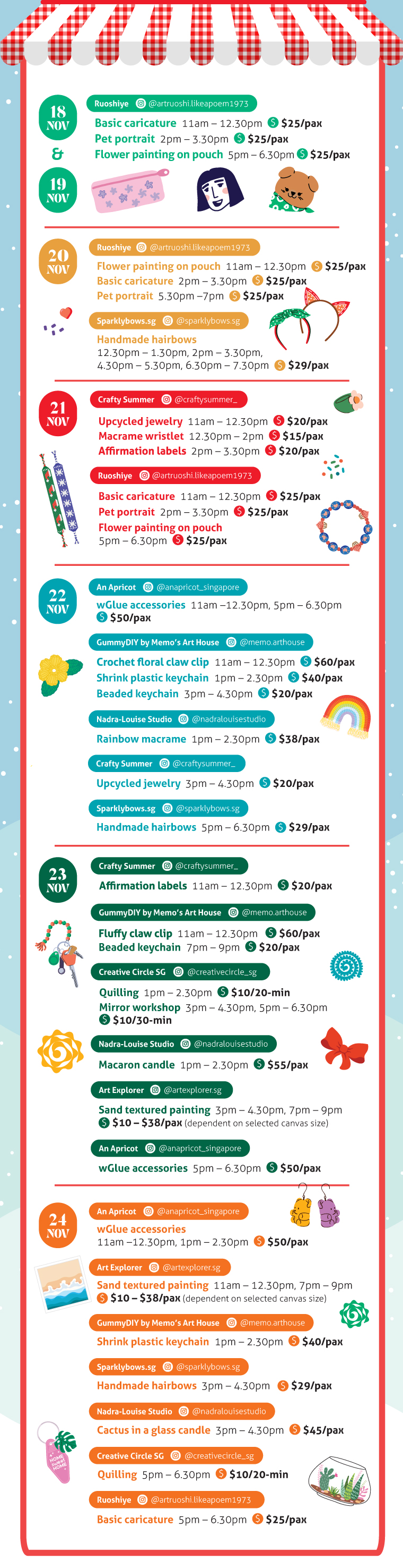 | 2 to 8 Dec | Northpoint City (L1 South Atrium) |